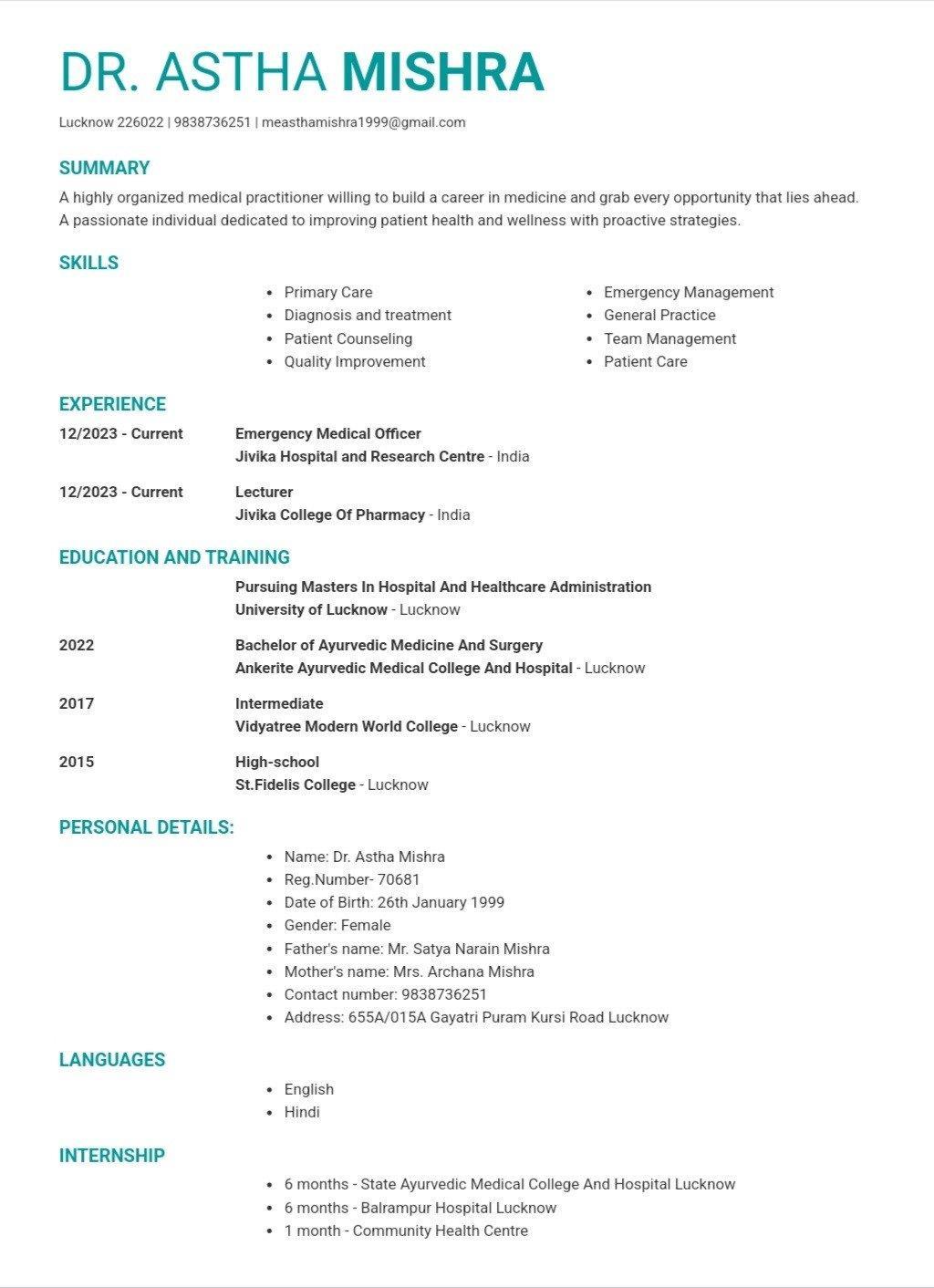A highly organized medical practitioner willing to build a career in medicine and grab every opportunity that lies ahead. A passionate individual dedicated to improving patient health and wellness with proactive strategies.